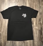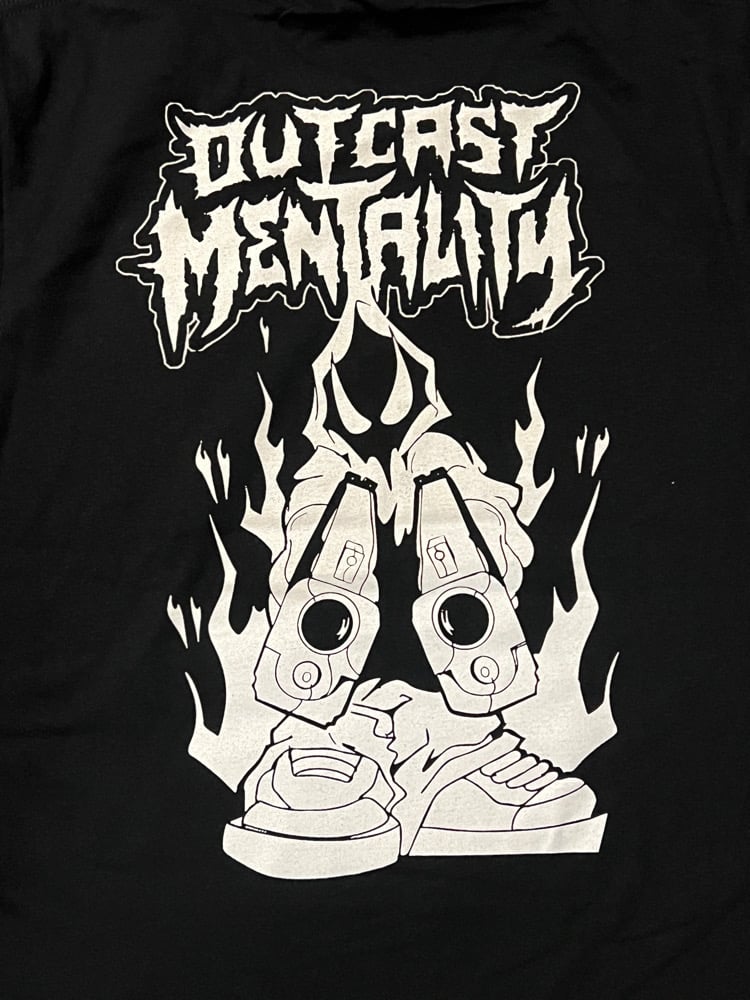 Shooter on back, bullet hole pocket print on front , reg fit tee , look hard and rep all summer long